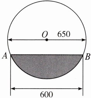 4. 在直径为 $ 650 mm $ 的圆柱形油槽内装入一些油后,平行于圆柱底面的截面如图,若油面宽为 $ 600 mm $,求油的最大深度。