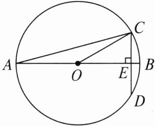 2. 在 $ \odot O $ 中,直径 $ AB = 15 $,弦 $ DE \perp AB $ 于点 $ C $,若 $ OC:OB = 3:5 $,则 $ DE $ 的长为(