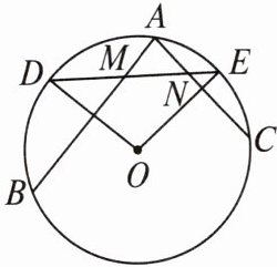 6. 如图,在 $ \odot O $ 中,$ OD $ 平分弦 $ AB $,$ OE $ 平分弦 $ AC $,求证:$ AM = AN $。
