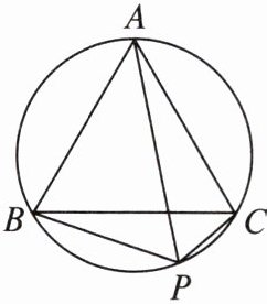 8. 如图,已知$\overset{\frown}{AB}= \overset{\frown}{BC}= \overset{\frown}{AC}$,点P为劣弧$\overset{\frown}{BC}$上的一点.