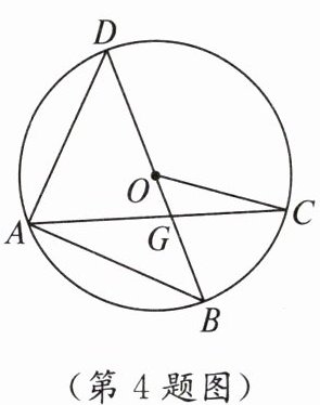 4. 如图,已知BD是⊙O的直径,点A,C在⊙O上,$\overset{\frown}{AB}= \overset{\frown}{AD}$,AC交BD于点G.若∠COD = 126°,则∠AGB的度数为(