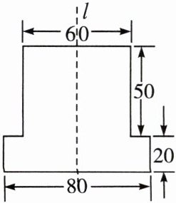 5. 由两个长方形组成的工件平面图(单位:$\mathrm{mm}$)如图所示,直线$l$是它的对称轴,能完全覆盖这个平面图形的圆面的最小半径是
