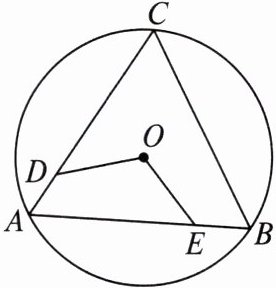 5. 如图,$\triangle ABC是\odot O$的内接正三角形,点$O$是圆心,点$D,E分别在边AC,AB$上,若$DA = EB$,则$\angle DOE$的度数是