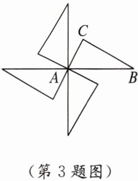 3. 如图,四个三角形拼成一个风车图形,若 $ AB = 2 $,当风车转动 $ 90^{\circ} $ 时,点 $ B $ 运动路径的长度为(