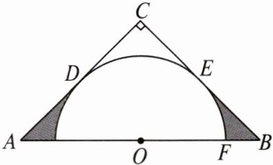 9. 如图,等腰直角三角形 $ ABC $ 的斜边 $ AB = 4 $,$ O $ 是 $ AB $ 的中点,以 $ O $ 为圆心的半圆分别与两直角边相切于点 $ D $,$ E $,求图中阴影部分的面积。
