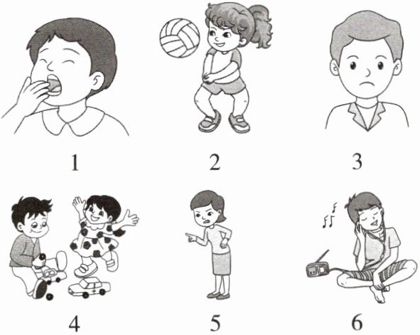 任务一:1. sleepy 2. energetic 3. sad 4. happy 5. angry 6. relaxed 任务二:1. relaxed 2. sad 3. angry 4. happy 5. energetic 6. sleepy