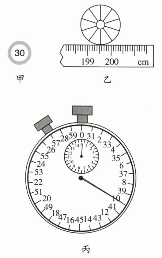 9. 某学校门口设有如图甲所示的限速标志,小明想探究驶过校门口的汽车是否超速,步骤如下: