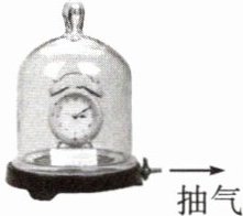 9. 如图所示,把正在响铃的闹钟放在玻璃罩内的塑料泡沫上,用抽气筒逐渐抽出罩内的空气,注意声音的变化;再让空气逐渐进入玻璃罩,注意声音的变化。