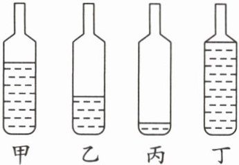 6. 右图的四个相同瓶子中,分别装上不同量的水后,用筷子敲击瓶子,会发出不同音调的声音,则音调由低到高的是(