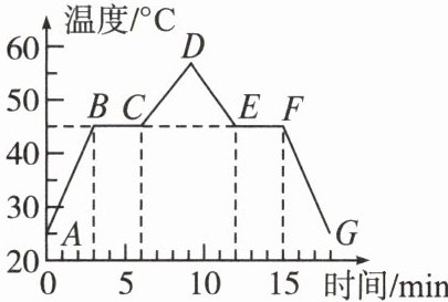 D 解析 有一段时间该物质吸热温度不变,所以该物质是晶体。该物质从t=3 min开始熔化,到t=6 min结束,故在t=5 min时,该物质处于固液共存状态,故A错误。在BC段,该物质不断吸热,但温度不变,故B错误。该物质从t=12 min开始凝固,到t=15 min凝固结束,该物质凝固过程持续了3 min,故C错误。该物质凝固时对应的温度是45℃,凝固点为45℃,故D正确。