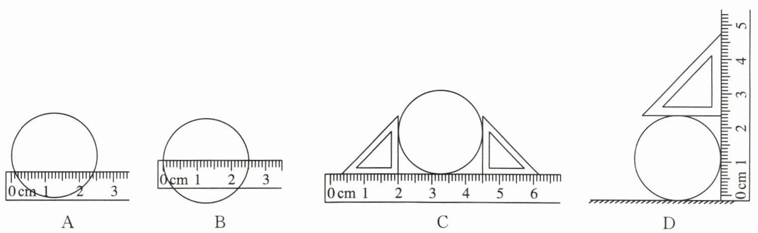 8. 测量是学习和生活中常见的操作,测量方法对物理探究的结果至关重要。如图所示,测量硬币直径的做法正确的是(