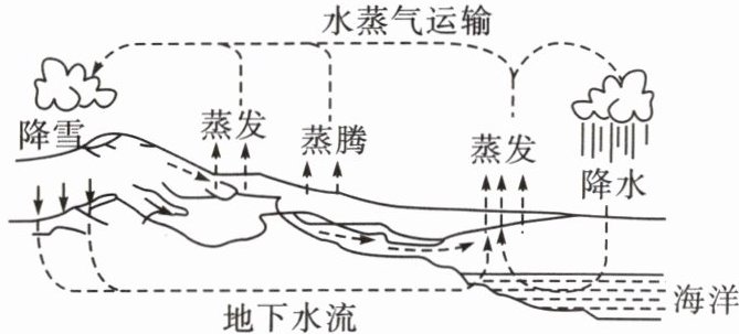 2. 地球上,水的三种状态在不断地相互转化。下图为地球上的水循环示意图,下列描述正确的是(