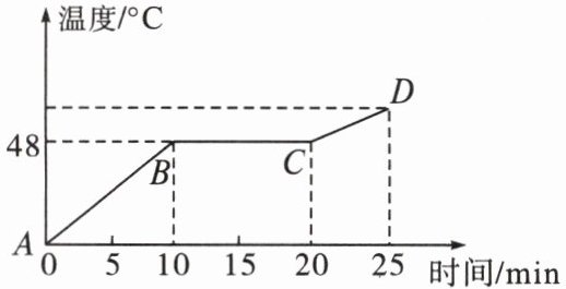 D 解析 由题图知,该物质在熔化过程中,即从B点到C点的过程中,虽然不断吸热,温度却不变,处于固液共存态,该物质是晶体,故A、B、C错误。由题图可知,该物质从第10 min开始熔化,到第20 min结束,熔化过程持续了10 min,故D正确。