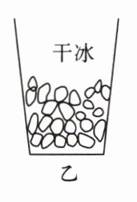 小组同学做对比实验,如图所示,在甲、乙两个相同杯子中分别放入适量的冰块和干冰。放置一段时间后,发现杯内物块均变小。甲杯内有液体出现,外壁有小水珠生成;乙杯内仍然是干燥的,外壁有一层薄霜生成。下面分析正确的是(