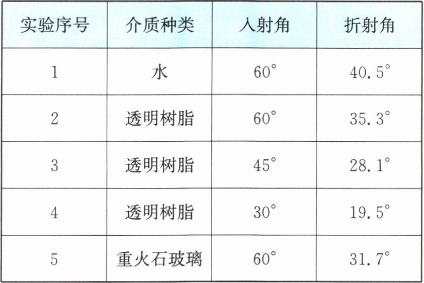 9. 创新实验小组探究光从空气斜射入透明介质中时,折射角大小与哪些因素有关。