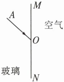 6. 如图所示,$ MN $ 为空气和玻璃的分界面,在大致位置作出 $ AO $ 的折射光线。