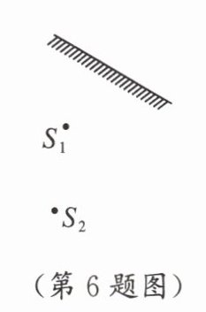 6. 如图所示,发光点$S在平面镜MN中的像为S_{1}$,当平面镜转过一定角度后,它的像为$S_{2}$,请你利用平面镜成像特点,画出转动后平面镜的大致位置。