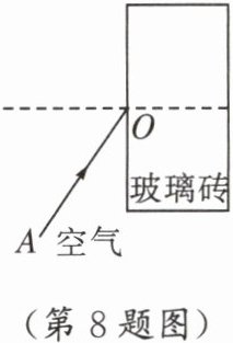 8. 光从空气斜射入玻璃砖中,在图中画出光通过玻璃砖的折射光线。