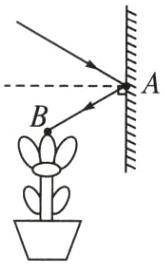 2. 如图所示,小明想要在$A$点放置一块平面镜,让此时的太阳光反射到盆中花上的$B$点。请在图中把光路补充完整,并画出平面镜。