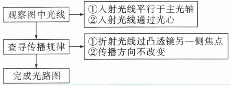 解析 平行于主光轴的光线经凸透镜折射后将过焦点,过凸透镜光心的光线传播方向不改变。