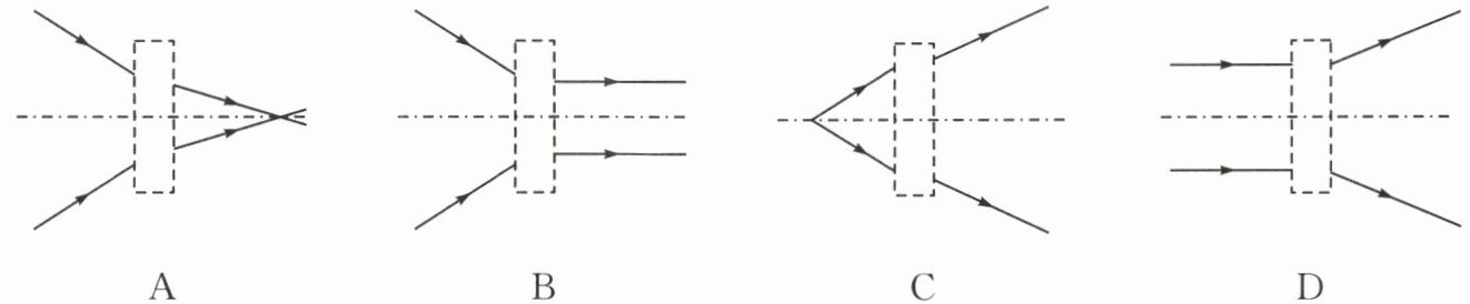 4. 下图是光线通过透镜(图中未画出)的情形,其中所用透镜是凸透镜的是(