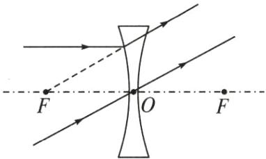 3. 请在图中画出经过透镜后的两条光线并标明方向。