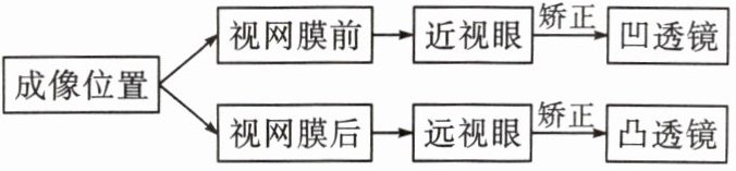 C 解析 根据图示可知,来自远处的光,提前会聚在视网膜前,这是近视眼;凹透镜对光有发散作用,可以矫正近视眼,小刚应戴凹透镜,故 A、B 正确。和患病前的晶状体相比,患病后晶状体的折光能力增强,其焦距变小,故 C 错误。经常做眼保健操可以缓解眼疲劳,保护眼睛,预防患这类眼睛疾病,故 D 正确。