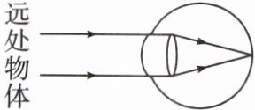 2. 如图所示,当我们看远处物体时,远处物体的光线正好聚焦在视网膜上。当我们从看远处物体改为看近处物体时(物距一般不小于$10$cm),为了使近处物体成像在视网膜上,晶状体厚度和焦距的变化情况分别是(