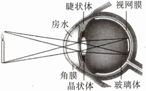 5. 下图是眼球成像原理图,其中晶状体和角膜的共同作用相当于一个凸透镜,视网膜相当于光屏。下列说法正确的是(