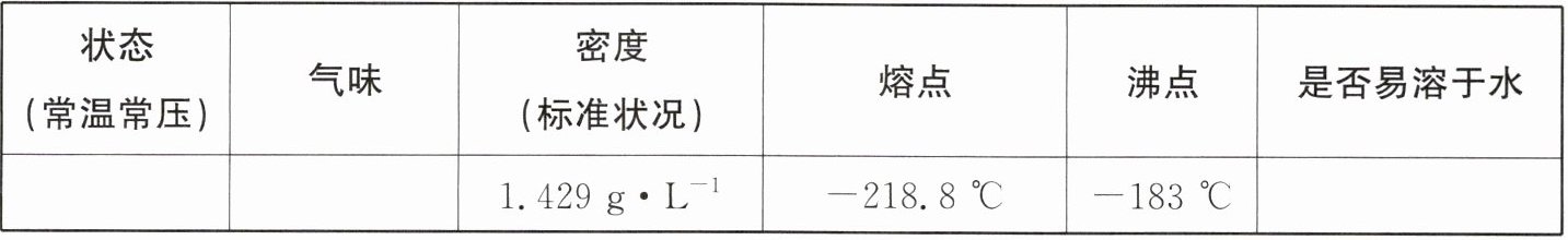 (填“物理”或“化学”)性质的描述,在压强为 101 kPa 时,氧气在$-183\ \degreeC$时变为淡蓝
