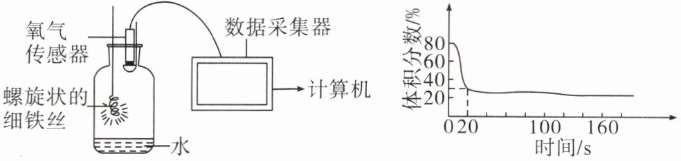 4. 某小组使用数据采集器探究“铁丝在氧气中燃烧”,集气瓶内氧气的体积分数随时间的变化关系如图所示。下列说法正确的是(