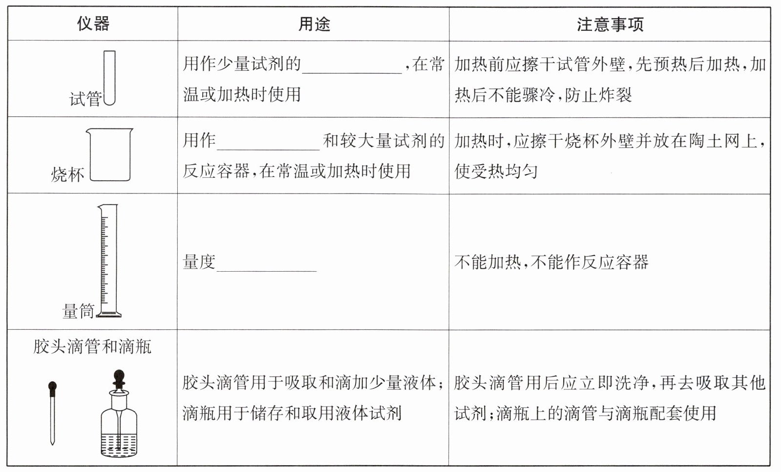 1.闻试剂(特别是气体)的气味 2.1~2 mL 铺满试管底部 3.放回原瓶 指定的容器内