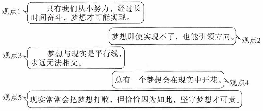 2. 辨析以下几种关于“梦想与现实”的观点。