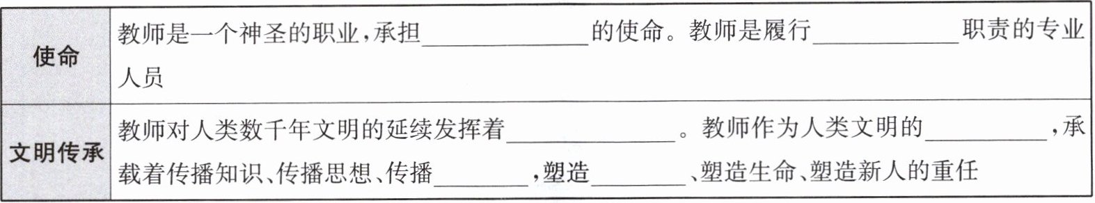 |使命|教师是一个神圣的职业,承担______的使命。教师是履行______职责的专业人员|