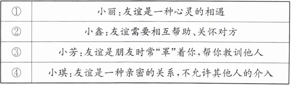 |④|小琪:友谊是一种亲密的关系,不允许其他人的介入|