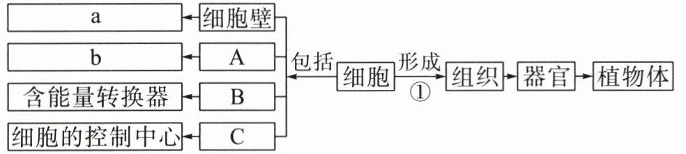 15. 下图是植物细胞的相关概念图,其中 A、B、C 表示结构,a、b 表示功能,①表示过程。下列叙述错误的是( )