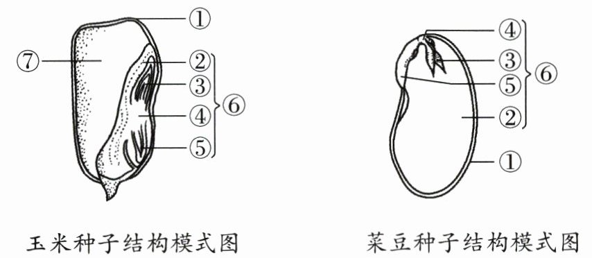 (3)菜豆种子和玉米种子都有⑥胚和种皮。