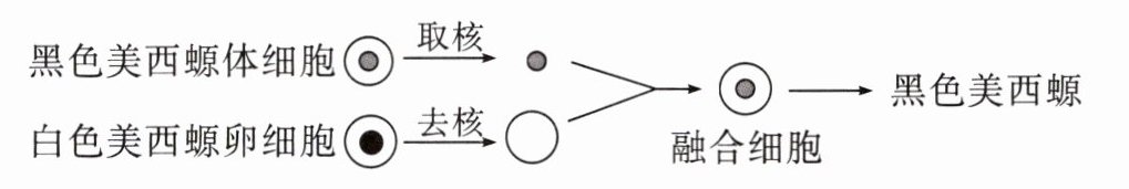 5. 将黑色美西螈体细胞的细胞核移植到白色美西螈的去核卵细胞中,形成融合细胞。在适宜的环境中,融合细胞发育成黑色美西螈。这说明控制美西螈皮肤颜色遗传的是(