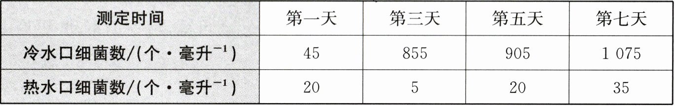 |热水口细菌数/(个·毫升$⁻^1)$|20|5|20|35|