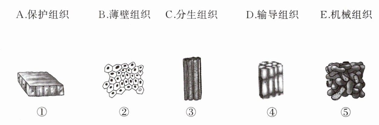 二、A—① B—⑤ C—② D—③ E—④ 三、细胞 组织 器官