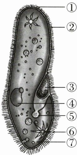(2)右图为草履虫的结构示意图。草履虫在液体中主要靠[ ]______摆动旋转前进;如果实验中发现草履虫游动过快,影响观察,可以在培养液中均匀地放几丝______。