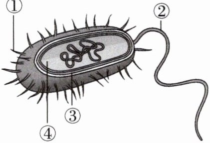 2. 右图是细菌的结构模式图,其中能帮助细菌在水中游动的结构是