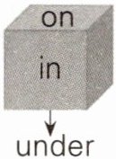 如图所示:in表示在里面;on表示在上面;under表示在下面。
