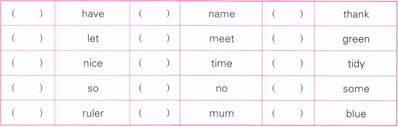 | ( ) | ruler | ( ) | mum | ( ) | blue |