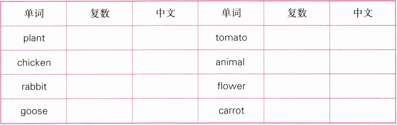 写出下面单词的复数形式和中文意思。