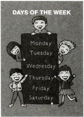 (图片为Days of the week,下方有周一至周六的卡通人物)