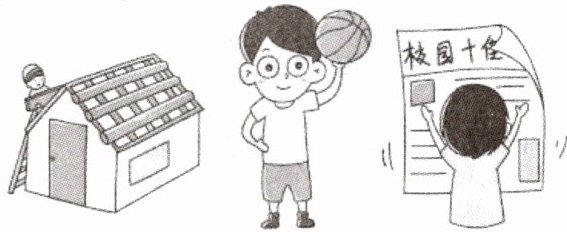 the classroom. 教室后面有一块黑板。There is a music hall ④