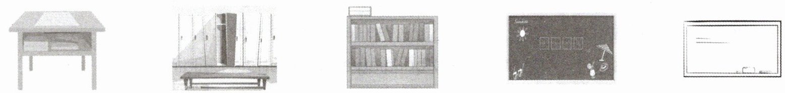 1. drawer 2. locker 3. bookcase 4. blackboard 5. whiteboard