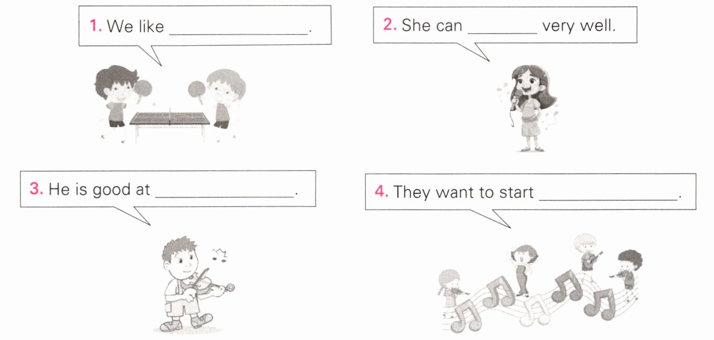 Ⅰ. 1. (playing) ping-pong 2. sing 3. (playing) the violin 4. a music club