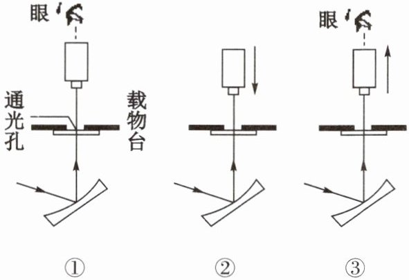 18. 如图所示为使用显微镜时的三个步骤,下列描述不正确的是( )